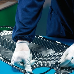 Pressatura del pacco piastre con polimerizzazione della colla in forno